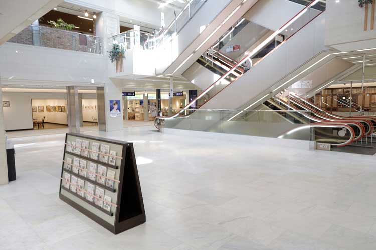 中央エスカレーターまわりに位置し、天井が吹き抜けになっており、明るい空間で立体的な展示ができます。