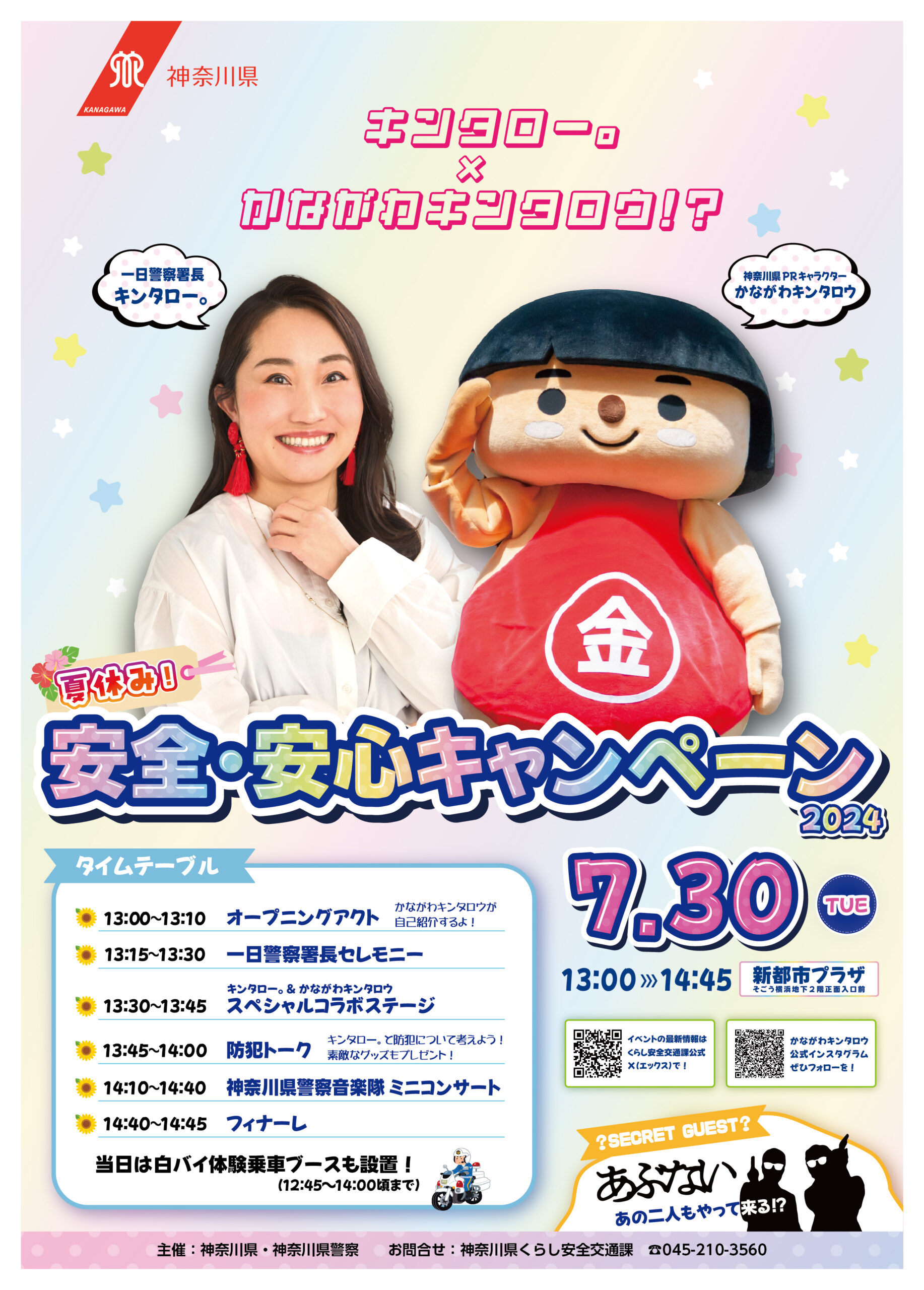 することを目的に、一日警察署長を委嘱するモノマネ芸人のキンタロー。さんに御協力いただき、夏休み安全・安心キャンペーン2024を開催します。